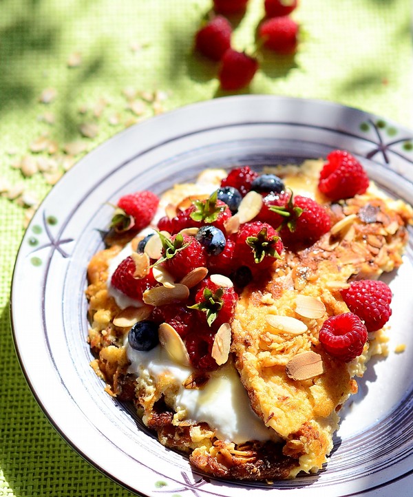 Omlet migdałowo-owsiany z owocami