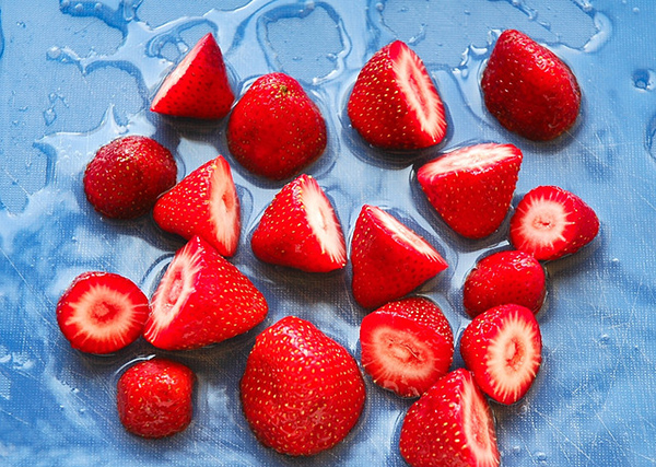 Szklankę świeżych truskawek zmiksować lub rozgnieść z łyżką jogurtu naturalnego i łyżką miodu. Miód działa przeciwbólowo, daje uczucie chłodu i przyspiesza gojenie. Nanieść na miejsce poparzone słońcem i owinąć gazą na 20 minut.