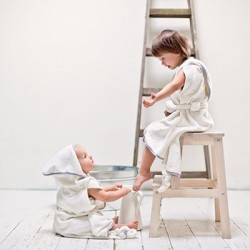 Dzieci na przestrzeni pięciu lat mają różne potrzeby kąpielowe. Ręcznik Poofi został zatem zaprojektowany tak, by podczas opieki nad noworodkiem pełnił rolę otulaka kąpielowego oraz fartucha kąpielowego dla rodzica. Przy starszaku natomiast staje się szlafrokiem – przydatnym nie tylko w domu, ale również podczas wypraw na basen czy letnich wypadów nad wodę.
