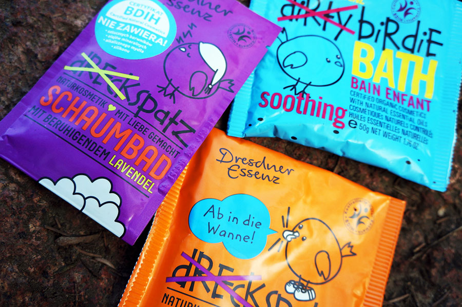 One nie tylko świetnie pachną, ale barwią i pienią wodę, mimo że nie zawierają żadnych sztucznych spieniaczy i barwników. W ich składzie znajdziemy wyłącznie naturalne kolory i naturalne kompozycje zapachowe, a także środki, które pomagają uzupełnić warstwę lipidową skóry i zwiększyć jej odporność na drażniące czynniki zewnętrzne. Za wytwarzanie piany odpowiada naturalny, roślinny surfaktant, będący bezpieczną alternatywą dla Sodium Lauryl Sulfate (pochodzący z oleju kokosowego i palmowego Sodium Lauryl Sulfoacetate – SLSA). Wszystkie sole do kąpieli z linii Dirty Birdie produkowane są na bazie soli morskiej i charakteryzują się niepowtarzalną kompozycją zapachową.