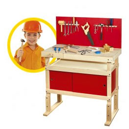 Dziecko „pracując” w warsztacie doskonali zdolności manualne, ale i uczy się myślenia przyczynowo-skutkowego, planowania, organizacji. Może w dowolny sposób przearanżować warsztat i tak powstaje sklep, księgarnia, zakład fryzjerski. Wystarczą inne akcesoria i narzędzia i kolejna zabawa rozpoczęta.
