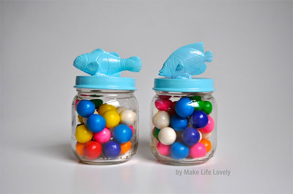 1. Słoiczek na przybory plastyczne: na plastelinę, ciastolinę, wszelkiego rodzaju koraliki, tasiemki, cekiny, brokat. Wszystko w jednym lub kilku słojach czy słoikach, które dodatkowo można ozdobić chociażby figurką z masy solnej, którą malujemy i przytwierdzamy do wieczka.