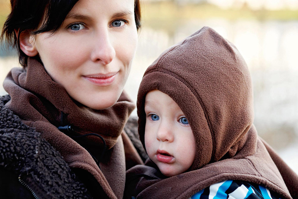 Przy spacerach w chuście czy nosidle, szczególnie późną jesienią i zimą, warto pamiętać o zabezpieczeniu tych części ciała dziecka, które nie są okryte chustą. W takich sytuacjach przydają się ocieplacze, ciepłe skarpety, buty, wiązane czapki i rękawiczki. Można nałożyć też większą kurtkę (np. partnera), dzięki której dziecko znacznie łatwiej ochronić przed wiatrem czy śnieżycą. Pamiętajmy, że maluch okryty chustą i kurtką rodzica najczęściej nie wymaga już noszenia własnej kurtki czy kombinezonu.