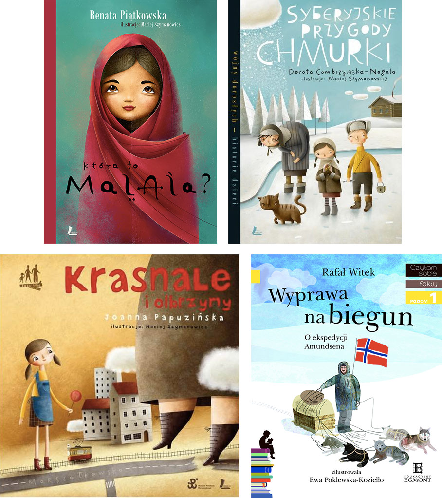 Historia – zarówno ta współczesna, jak ta sprzed lat, w odpowiedni sposób podana najmłodszym, pozwala zrozumieć otaczający nas świat. Wśród historycznej literatury dla dzieci wyjątkowo przejmującym i wartym uwagi tytułem jest książka „Która to Malala”, Renaty Piątkowskiej, która opowiada o pakistańskiej działaczce na rzecz praw kobiet i laureatce Pokojowej Nagrody Nobla z 2014 roku. Poza nią, znajdziemy szereg literatury, która prawdziwe, ludzkie historie przedstawia w sposób przejmujący, angażujący i czasem zabawny – aż chce się czytać. Wśród nich warto wymienić „Syberyjskie przygody Chmurki” Doroty Combrzyńskiej-Nogali, „Krasnale i olbrzymy” Joanny Papuzińskiej czy całą serię książeczek „Czytam sobie” – m.in. „Wyprawa na biegun. O ekspedycji Amundsena”.
