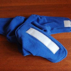 Średniej grubości polar o wymiarach ok. 50×100 cm, składamy na pół prawą stroną do środka i przykładamy formę. Formę można odrysować od innego otulacza, odpowiednio ją powiększając, jeżeli jest już za mały. Można też wyciąć formę z materiału: przyłożyć do pupy dziecka i zaznaczyć miejsca na wszycie gumek. Gumki wszyjemy wokół nóżek i na pleckach. Forma może być także z papieru, ale te materiałowe łatwiej jest przypiąć ij przechowywać.