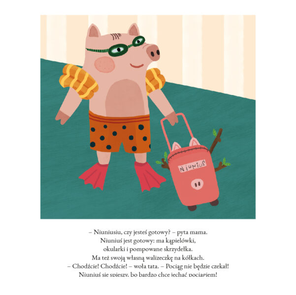 Wbrew pozorom, najbardziej zaplanowane podróże mogą być dla nas źródłem największych wątpliwości i rozczarowań. Wkurzamy się, gdy pokój hotelowy wygląda zupełnie inaczej niż apartament przedstawiony w folderze, a wyżywienie nie ma nic wspólnego z domowymi posiłkami. Wkurzamy się, bo przecież wszystko było skrupulatnie zaplanowane i opłacone z góry, przecież miało zagwarantować nam udany wypoczynek. A gdyby tak na nic konkretnego się nie nastawiać, a zamiast tego po prostu spakować najpotrzebniejsze rzeczy, wsiąść do pociągu, bawić się na plaży, kąpać w morzu i piec jabłka na ognisku? Tak właśnie wyglądają wakacje bohatera serii Agi Nuckowski. „Niuniuś i lato” to kolejna (po „Niuniusiu i wiośnie”) część, która ukazała się nakładem wydawnictwa Natuli. Tytułowy Niuniuś to sympatyczna świnka, która uwielbia spędzać czas na świeżym powietrzu i samodzielnie odkrywać świat. W końcu ma aż trzy lata, a to zobowiązuje!