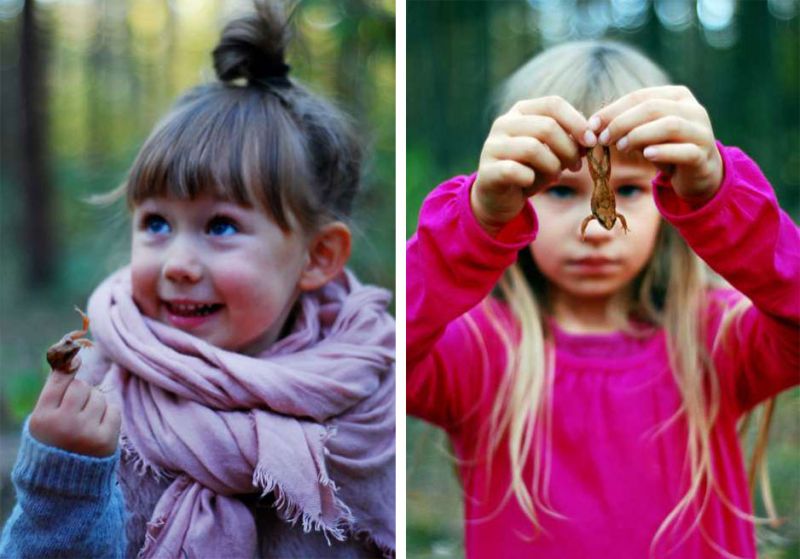 - Odkrywamy, że sezon na żaby jeszcze trwa. Polujemy na nie i całujemy. Jest na tyle ciepło, że przemoczenie butów w bagienku nie grozi jeszcze natychmiastowym zapaleniem płuc.