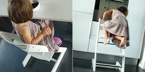 3. I to, co dla nas teraz najważniejsze. Kiedy dziecko wyrasta ze zwykłych krzesełek do karmienia, bo “jest już duże” i chce siedzieć na zwykłym krześle, jak reszta rodziny, pojawia się problem. Na zwykle krzesło maluch jest jeszcze za mały. Wtedy radzimy sobie różnie: podkładamy poduszki, dziecko klęczy na krześle albo bierzemy je na kolana. W Tripp Trapp dziecko dziecko czuje się komfortowo, bo wysokość siedziska dopasowujemy do wielkości dziecka i poziomu blatu. To bardzo wygodne rozwiązanie!
