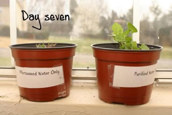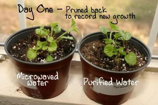 Grupka uczennic z Sussex w Anglii zrobiła test, w ramach którego przez 10 dni podlewały dwie takie same rośliny wodą zagotowaną w różny sposób: pierwszą w kuchence mikrofalowej, drugą w naczyniu na tradycyjnej kuchence, a następnie przestudzoną.