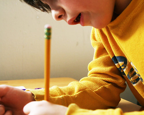 W szkole dziecko leworęczne powinno mieć sąsiada po swojej prawej stronie, aby oboje nie przeszkadzali sobie podczas pisania. Zeszyt powinien być położony ukośnie i nachylony w prawą stronę. Kąt nachylenia kontroluje dziecko, tak jak jest mu wygodnie, nawet jeśli zeszyt ułożony byłby prawie pionowo do krawędzi ławki. W początkowej fazie nauki pisania dziecko powinno używać ołówka – eliminuje to różne utrudnienia. Obie stopy dziecka powinny być oparte o podłogę, a przedramiona o stół. Plecy powinny być proste, a tułów lekko oddalony od ławki. Taka pozycja podczas pisania zapewnia swobodę ruchów rąk i jest optymalna dla dziecka.