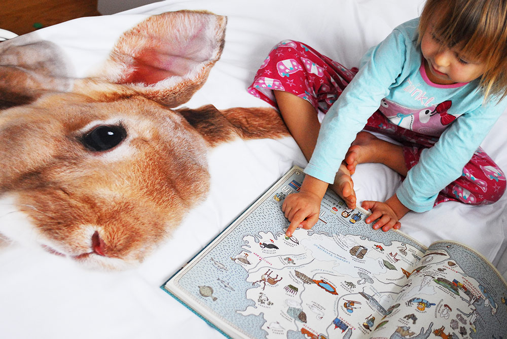 I nie jest to bynajmniej pościel typowo i wyłącznie dziecięca, a swoisty uniwersalizm sprawia, że chętnie przygarnęłabym taką również dla siebie. Powstałoby w domu prawdziwe, drukowane animalium, w którym jeż z zającem czy sarną dogadują się znakomicie. Tymczasem jednak pościelą od Makalulu cieszy się moja córka. Choć ma tendencję do różów i błyszczących elementów, bo taka jej czteroletnia natura, pokochała swojego minimalistycznego królika od pierwszego wejrzenia.