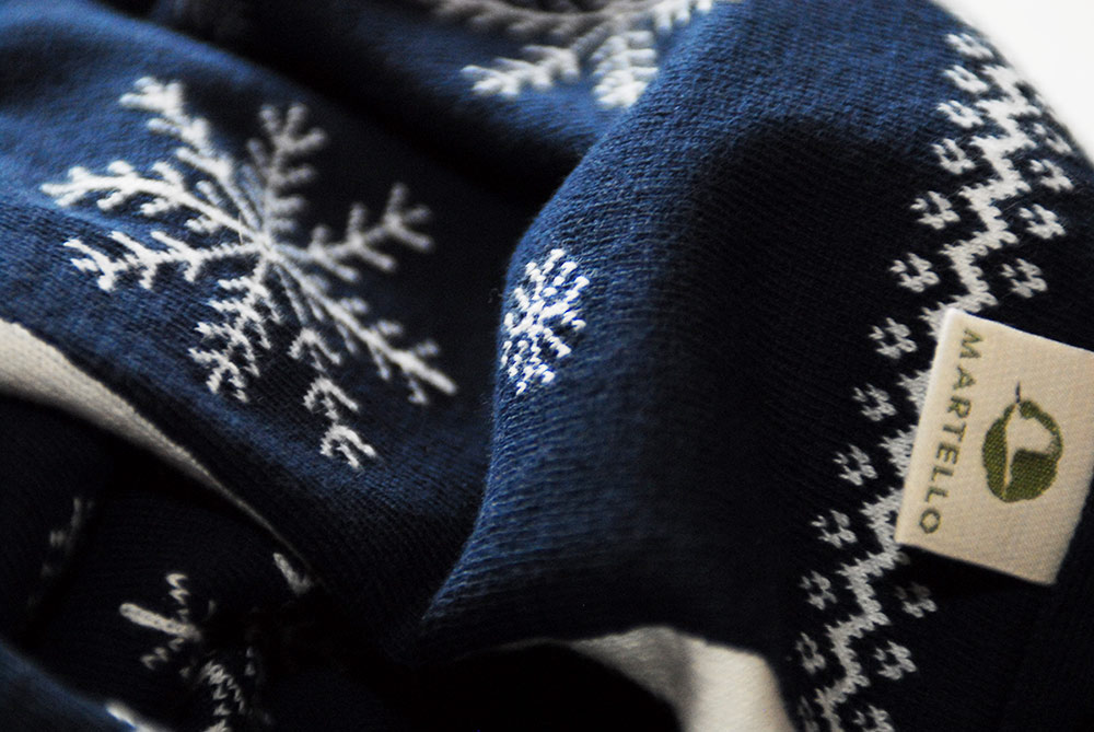Martello to polska marka, która tworzy personalizowane produkty dla dzieci z wełny merynosów i bawełny organicznej. To, co ją wyróżnia, to certyfikat GOTS. Piszę o tym, bo kocyk który do nas przywędrował, poza tym że jest pięknie wykonany i zdobiony w fantastyczne, zimowe, norweskie wzory, jest też bezpieczny dla skóry mojego dziecka. Tak jak dla każdej skóry – również tej ze skłonnościami do alergii.