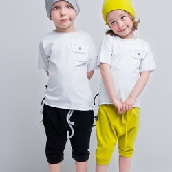 Zestaw idealny na upalne dni: spodenki Mini Shorts i T-shirt kimono. Bawełna pozwala skórze oddychać, jakość wykończenia gwarantuje trwałość, materiał jest miły w dotyku. Te ubrania także mają fason i kolor unisex.