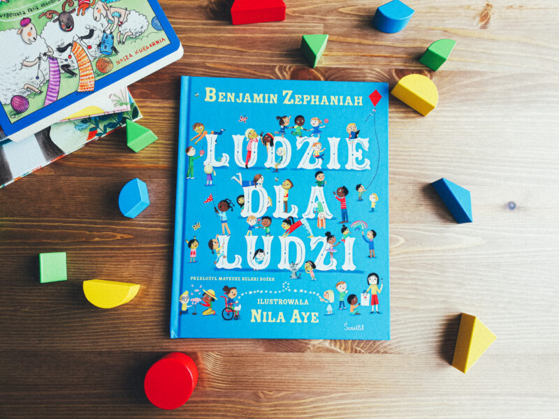 Od zajączka, którego aż przerażała myśl o opuszczeniu domu, przechodzimy do najbardziej ekstrawertycznej książki świata. „Ludzie dla ludzi” Benjamina Zephaniaha, bo o niej mowa, to krótka, rymowana opowieść, w której głównymi bohaterami są… ludzie. Całe mnóstwo ludzi! Śmieją się razem, spacerują, przytulają, wspólnie jedzą posiłki. Powiem, posyłając do was oko, że ta książka może wkurzać każdego rodzica, który przez chwilę chciałby pobyć sam (zwłaszcza w łazience). A tu autor jeszcze opowiada o tym, że bycie samemu jest do kitu! Ale ma rację. Bo choć każdy z nas poszukuje przestrzeni, w której może czasami być sam, odpoczywać, rozwijać pasje, to na dłuższą metę takie rozwiązanie przecież nikogo nie satysfakcjonuje.