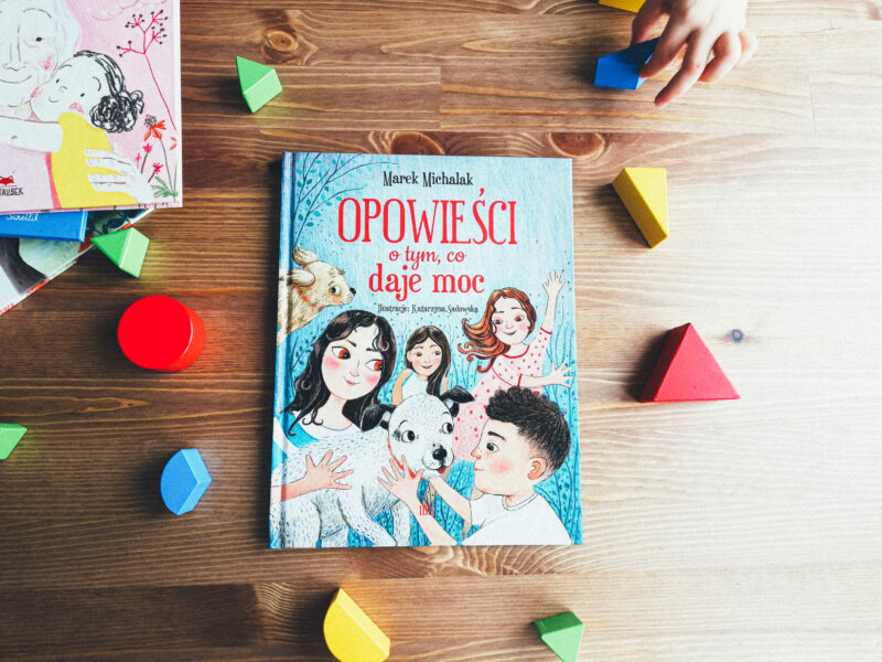 Zacznę od książki, która szalenie mnie zaskoczyła. Spojrzałam na nią i doszłam do wniosku, że, mimo ciekawego wydania i ładnych ilustracji, znajdę w niej opowieści, które dobrze się czyta, ale na tym się skończy. Opowieści, jakich w polskich księgarniach wiele – żadnych literackich uniesień, beletrystycznych fajerwerków. Ale się myliłam! „Opowieści o tym, co daje moc” okazały się właśnie tymi fajerwerkami. Zanim jednak przejdę do tego, co we wspomnianej książce daje moc (a daje, porządnie!), opowiem trochę o narracji. Dziś naprawdę trudno o lekturę dla najmłodszych czytelników, w której dialogi są tak rozbudowane i ciekawe, a przy tym napisane tak naturalnie i autentycznie, że aż mamy wrażenie, że jesteśmy w samym środku zdarzeń. Codzienne sytuacje, ktoś wchodzi, ktoś wychodzi, ktoś przypadkiem podsłuchuje i aż nie może wytrzymać, by nie wtrącić się do rozmowy. A rozmawia cała rodzina! Dziadkowie, rodzice i aż czworo niesamowitych dzieci – Julka, Miłosz, Hania i Amelka. I nie tylko. Ta rodzina jest naprawdę duża!