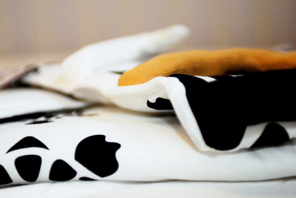 Ale pomysł to nie wszystko, jeśli nie idzie za nim dobre wykonanie. Rożek od NOGISTONOGI szyty jest z organicznej bawełny pozyskiwanej z upraw ekologicznych, a wszelkie wzory drukowane są bezpiecznymi farbami wodnymi. NOGISTONOGI posiadają certyfikat GOTS, obejmujący cały łańcuch produkcji (co oznacza, że dany produkt nie tylko stworzony został z bawełny organicznej, ale cały cykl produkcji był etyczny i ekologiczny: od ziarenka bawełny, przez barwienie, wytwarzanie produktu w firmie, aż po opakowanie, które musi spełniać rygorystyczne standardy). Kołderki są szyte w Chinach, ale ich autorka sama dokładnie sprawdziła w jakich warunkach odbywa się produkcja i czy jest ona zgodna z zasadami “social rules”.
