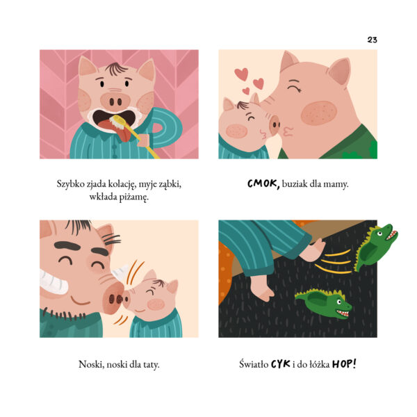 Historyjki obrazkowe dla najmłodszych, których bohaterami są urocza świnka i jej rodzice. Pełne humoru opowieści o codzienności, które dają wytchnienie, służą oswojeniu lęków i ułatwiają radzenie sobie z trudnymi emocjami.