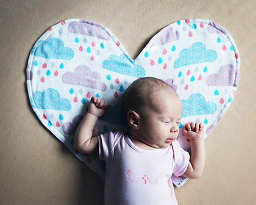 - w czasie karmienia piersią, ponieważ przejmuje rolę pieluszki tetrowej. Serduszkiem można wytrzeć buzię dziecka, osłonić pierś, ochronić ubranie dziecka lub swoje w momencie odbijania,
