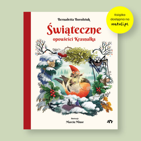 Wspomnieliśmy o nieco starszych odbiorcach – to właśnie z myślą o nich powstała kolejna świąteczna nowość od wydawnictwa Natuli. „Świąteczne opowieści Krasnalka” to niesamowita, pięknie zilustrowana książka, która przywraca pamięć o starych baśniach. O ile jednak na kartach dawnych ksiąg nie brakowało przemocy, o tyle baśniowe historie Krasnalka pełne są wdzięczności, uważności, miłości i empatii. Ich autorka, Bernadetta Borodziuk, podkreśla wagę każdej emocji, żadnej nie stara się ukryć – nawet gdy bohaterowie odczuwają smutek czy strach, wiedzą, jak sobie z nimi poradzić i akceptują wszystkie pojawiające się uczucia.