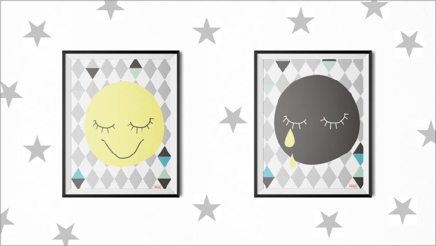 Obok kolorystyki ważne dla kompozycji wystroju dziecięcego pokoju są formy i kształty. Dziecko szybciej przyswaja, odróżnia, porównuje formy proste, geometryczne, niezawierające drobnych elementów dekoracyjnych. Jednolite kolory, gładkie powierzchnie, proste kształty mają wpływ na rozwój umiejętności logicznego myślenia i dają pierwsze lekcje koncentracji i zapamiętywania. Polecane wzory w zygzaki, gwiazdki, romby, pasy, trójkąty, kropki reprezentują właśnie te najprostsze formy, którymi dzieci mogą wyrazić całość otaczającego ich świata. Unikajmy krzykliwych, bajkowych tapet – wybierzmy stonowane, delikatne plakaty i naklejki, które możemy rozmieścić według własnego pomysłu. Zobaczcie propozycje od Humpty Dumpty: