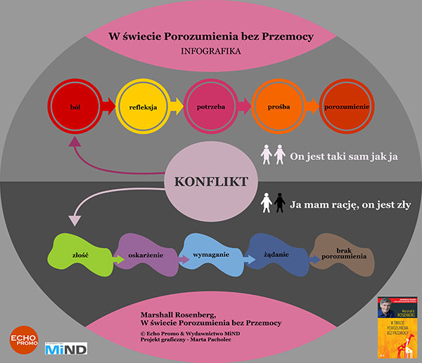 Jestem zachwycona, że na 200 stronach znajduję większość zdań Marshalla, które swojego czasu zrewolucjonizowały moje spojrzenie na świat i na mnie samą. Rosenberg zaprasza do szukania porozumienia, mówiąc, że dawanie rad dzieciom jest bezpieczną opcją tylko wtedy, gdy dostaniemy notarialne potwierdzenie, że sobie tego życzą. Powtarza też, że każdą rzecz, którą warto robić, warto robić nawet kiepsko. Przypomina, że jeżeli ktoś coś dla nas robi, niech robi to tylko i wyłącznie dobrowolnie. „Nigdy nie rób dla mnie nic z lęku, winy, wstydu, urazy lub rezygnacji. Uszanuj moją prośbę tylko wówczas, kiedy dawanie jest dla ciebie darem wynikającym z potrzeby serca”.
