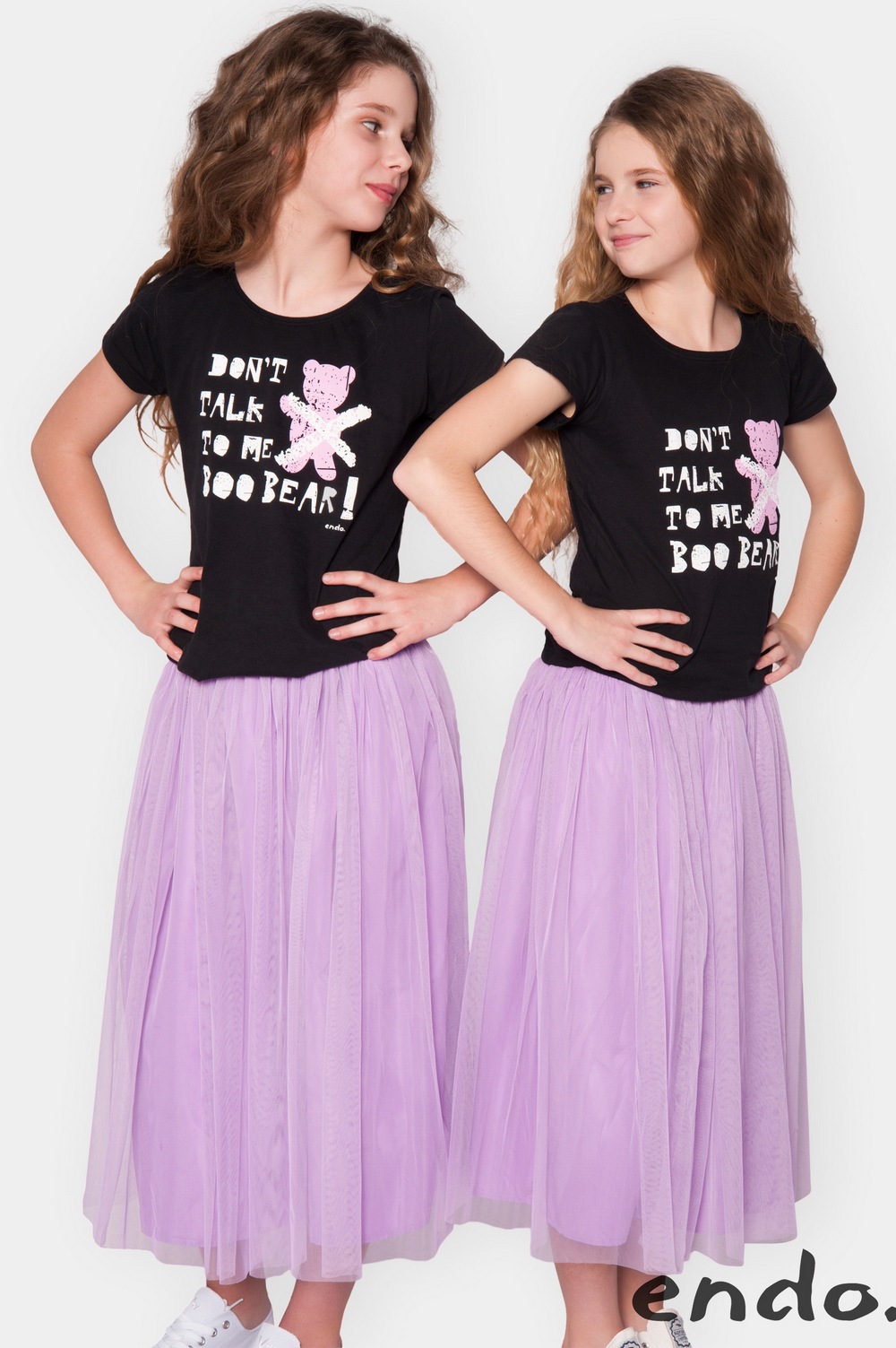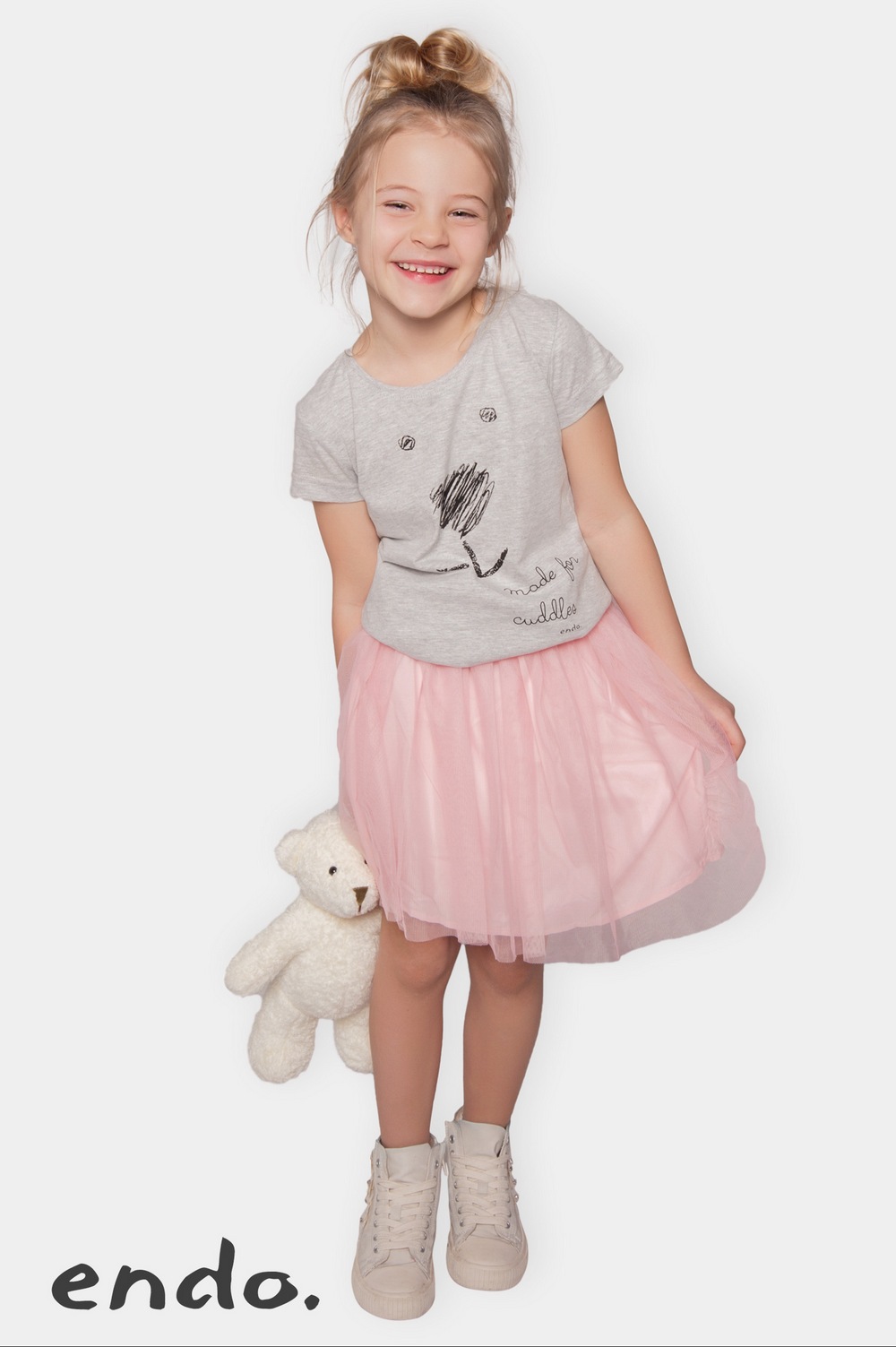 Grafiki przygotowywali znani plastycy, dlatego ubrania wpadały w oko, a hasła umieszczone na nich długo pozostawały w pamięci. „Nie mów do mnie misiu”, „Będę grzeczny… od jutra”, „100% urwisa”, „100% aniołka”, „Mama nie zawsze ma rację” to jedne z najpopularniejszych i najbardziej lubianych. Te kultowe teksty Endo znają już chyba wszyscy, a „połowa” Polski nosi je na koszulkach, zatem najwyższy czas na zmianę i nową zabawę słowami – tym razem po angielsku! Jedno się jednak nie zmienia – ciągle ma być zabawnie i niestereotypowo, a przy okazji i rozwojowo – nauczymy się kilku fajnych zwrotów. Nigdy nie wiadomo, kiedy się przydadzą!