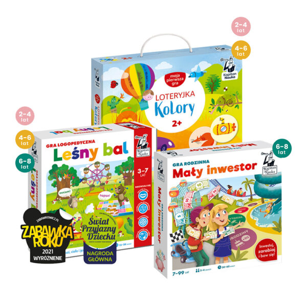 Nie, nie prawdziwych. Ale graczom wcale to nie przeszkadza – w końcu także te zabawkowe banknoty trzeba dobrze zainwestować. Czasami jednak lepiej jest się wstrzymać i zaoszczędzić. Który ruch w danej sytuacji będzie najlepszy? Cóż, tego gracze dopiero dowiedzą się przy następnych rundach. Właśnie dlatego „Mały inwestor. Gra rodzinna” nie może istnieć bez dobrego planowania i przewidywania swoich działań. Powstała z myślą o siedmiolatkach, ale też starszych dzieciach, które zarabianie, oszczędzanie i pomnażanie pieniędzy mają we krwi. Oprócz planszy, która jest tu centrum dowodzenia, czeka na was 100 banknotów (do podziału!), 40 żetonów, pionki i kostka. Ważne są też ilustracje Anny Kalicińskiej, dzięki którym gra jest jeszcze przyjemniejsza. Jesteście gotowi na emocjonującą rozgrywkę? A może wolicie nieco spokojniejsze gry? Kapitan Nauka ma dla was to wszystko. Śmiało, wskakujcie razem z nim na pokład!