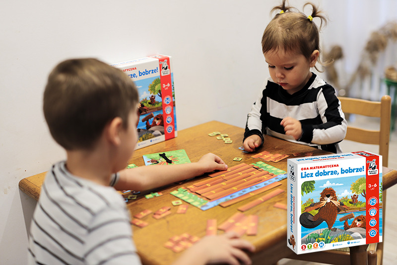 W naszym świątecznym zestawieniu nie mogło zabraknąć gier, razem z którymi nauka dodawania, odejmowania, ale też… wydawania pieniędzy będzie czystą przyjemnością. Zanim jednak przejdziemy do zarządzania finansami i inwestowania, przyjrzyjmy się podstawom. „Licz dobrze, bobrze! Gra matematyczna” sprawdzi się tu doskonale. Idealna dla graczy od 3 do 6 roku życia, którzy chcą nauczyć się liczyć do dwudziestu, a jednocześnie wcale nie mają ochoty uczyć się tej długiej listy na pamięć. Czy jednak da się przyswoić tyle liczb w czasie wesołej zabawy? Oczywiście! A pomysłowe bobry, bohaterowie zilustrowanej przez Katarzynę Nowowiejską gry, z którą tym razem przychodzi do nas Kapitan Nauka, udowadniają to na każdym kroku. Czekają na was 4 plansze do budowy tamy, 24 żetony z bobrami, 74 dwustronne belki drewna i plansza ze wskazówką do losowania, którą mali gracze uwielbiają szczególnie. I nic dziwnego – przecież taka plansza jest tylko jedna! A kto wygrywa? Ten, kto pierwszy ułoży trzy poziomy tamy.
