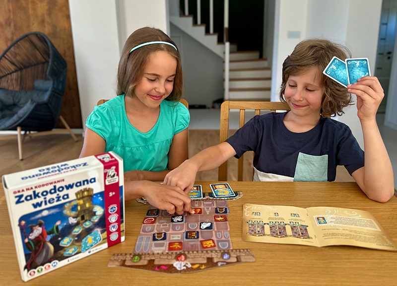 Aby doskonalić koncentrację i cierpliwość, a więc umiejętności niezbędne zawodowym programistom, wystarczy sięgnąć po gry kooperacyjne, które wspierają myślenie logiczne i kreatywność. Doskonałym przykładem jest „Zakodowana wieża. Gra na kodowanie”, zilustrowana przez Justynę Hołubowską-Chrząszczak i Marię Murawską, a stworzona dla dzieci powyżej 5 roku życia. Na czym polega? Spieszymy z wyjaśnieniem! Gracze nie rywalizują ze sobą, jak ma to miejsce w przypadku wielu innych gier – tutaj wszystko jest nastawione na współpracę. Wspólnie kodują ruchy czarodzieja, by w końcu dotrzeć do skarbów ukrytych w zamku. Trasa na zamkową wieżę jest dość wymagająca, ale dzieci, współpracując ze sobą, są w stanie przechytrzyć duchy. To oczywiście nie byłoby możliwe bez sekwencji i algorytmów, ale mistrzowie kodowania wiedzą o tym doskonale.