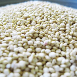 Wskazówka: ziarna quinoa są bardzo małe, dlatego jeśli masz sito o średnich oczkach, przez które ziarna przelatują, płucz je w misce, zmieniając wodę, dwa, trzy razy do momentu, kiedy woda przestanie się pienić. Odcedź przez płótno lub gazę (uwaga: zbyt długie moczenie ziaren zwiększy ich podatność na rozgotowanie).