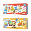 “Puf Puf cyferki” to zabawa dla miłośników liczb i pociągów. Z 22 elementów powstaje bardzo długi pociąg – ma aż 130 cm długości. W każdym ponumerowanym wagonie podróżuje inne zwierzę, a zadaniem dziecka jest ustawić je w odpowiedniej kolejności tuż za lokomotywą.