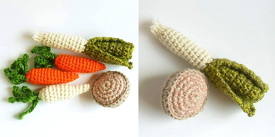 Jak zatem skutecznie zachęcić maluchy do wcinania warzyw i owoców sezonowych? Można wykorzystać miłość dzieci do zwierząt i tłumaczyć, że to właśnie dzięki warzywom domowy chomik jest taki duży i silny. Można też próbować czerwone buraki czy marchewkę przemycić w cieście (pycha!), a brokuły w zapiekance. Można wreszcie opowiadać najmłodszym bajki, którymi pozytywnymi bohaterami są warzywa – pomocne do tego staną się zabawki-warzywa. Pluszowa lub włóczkowa włoszczyzna wykonana na szydełku mogą stać się kluczem do sukcesu!