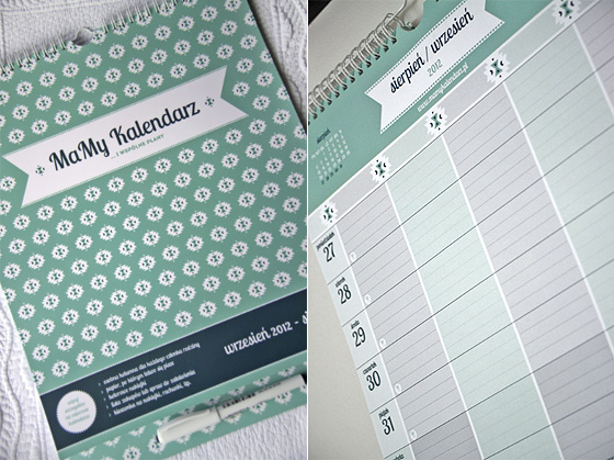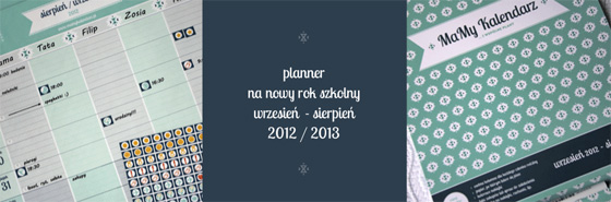 MaMy Kalendarz to planner tygodniowy do powieszenia na ścianie, obowiązujący w obecnym roku szkolnym (od września 2012 r. do sierpnia 2013 r.). Stworzony przez dwie mamy, ma za zadanie pomóc nam i naszym bliskim w ogarnięciu chaosu życia codziennego.
