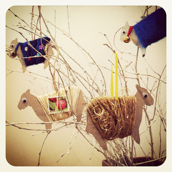 To prosta i łatwa do wykonania dekoracja świąteczna. Baranki ładnie wyglądają zawieszone na gałązkach.