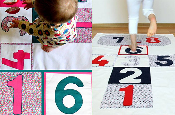 Chyba każdy z nas grał i nadal gra w klasy, chociażby z dziećmi. Świetnie, jeśli jest piękna pogoda, mamy do dyspozycji kredę i kawałek chodnika – klasy powstaną błyskawicznie. Agrafka chciała umożliwić dzieciom grę w klasy także podczas niepogody – na dywanie w domu czy na trawie. W jaki sposób? Plansza klas jest wyszyta na kawałku płótna. Dodam, iż jest wykonana bardzo starannie, widać, że autorka włożyła w wykonanie klas sporo pracy. Poza tym klasy możemy mieć zawsze przy sobie, w parku czy na pikniku – wystarczy, że je złożymy, włożymy do dołączonego woreczka i w drogę… Na górze maty znajdują się trzy zawieszki, możną ją więc zamocować na ścianie i cieszyć oko ciekawą dekoracją pokoju. Wymiary: 140x90cm.