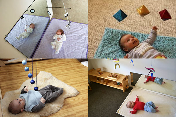 A po co w ogóle wieszać kurzołapy, przecież wzrok dziecka i bez tego się rozwinie? Oczywiście, rozwinie się i wcale nie będzie gorszy. Montessoriańskie mobile są odpowiedzią na realną potrzebę małego dziecka, potrzebę przyglądania się światu, ponad to kształcą zmysł estetyczny malucha, zachęcają do skupiania wzroku na przedmiocie i ćwiczą koncentrację uwagi… Czy jako rodzice, nie chcemy zaspokajać wszystkich potrzeb naszych dzieci?
